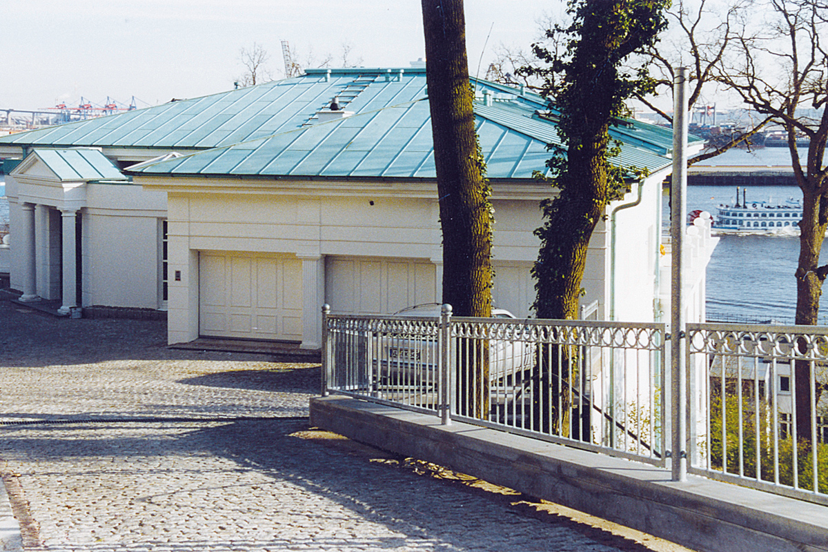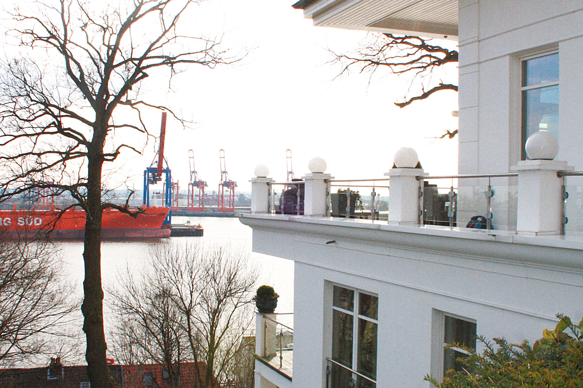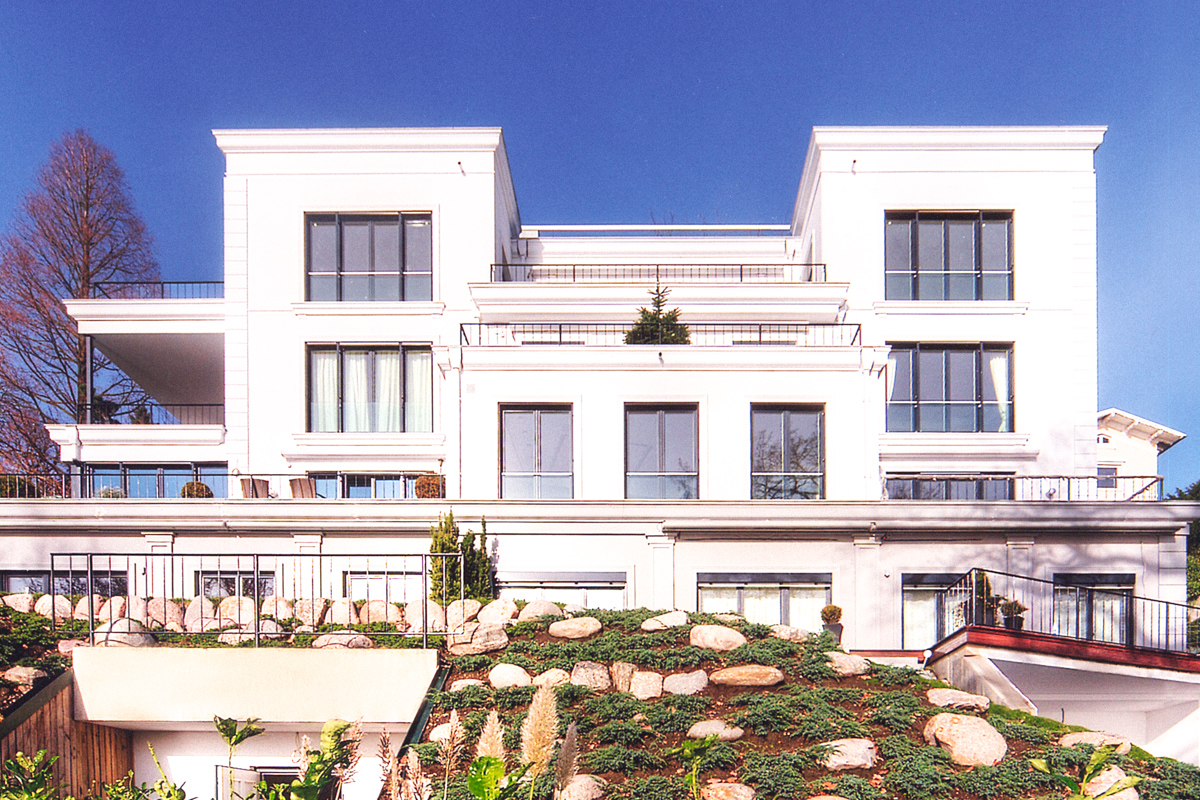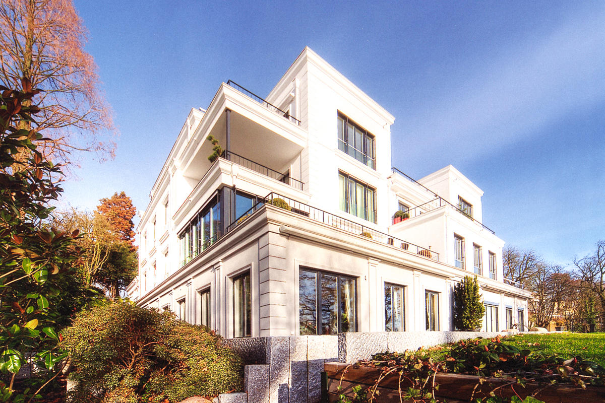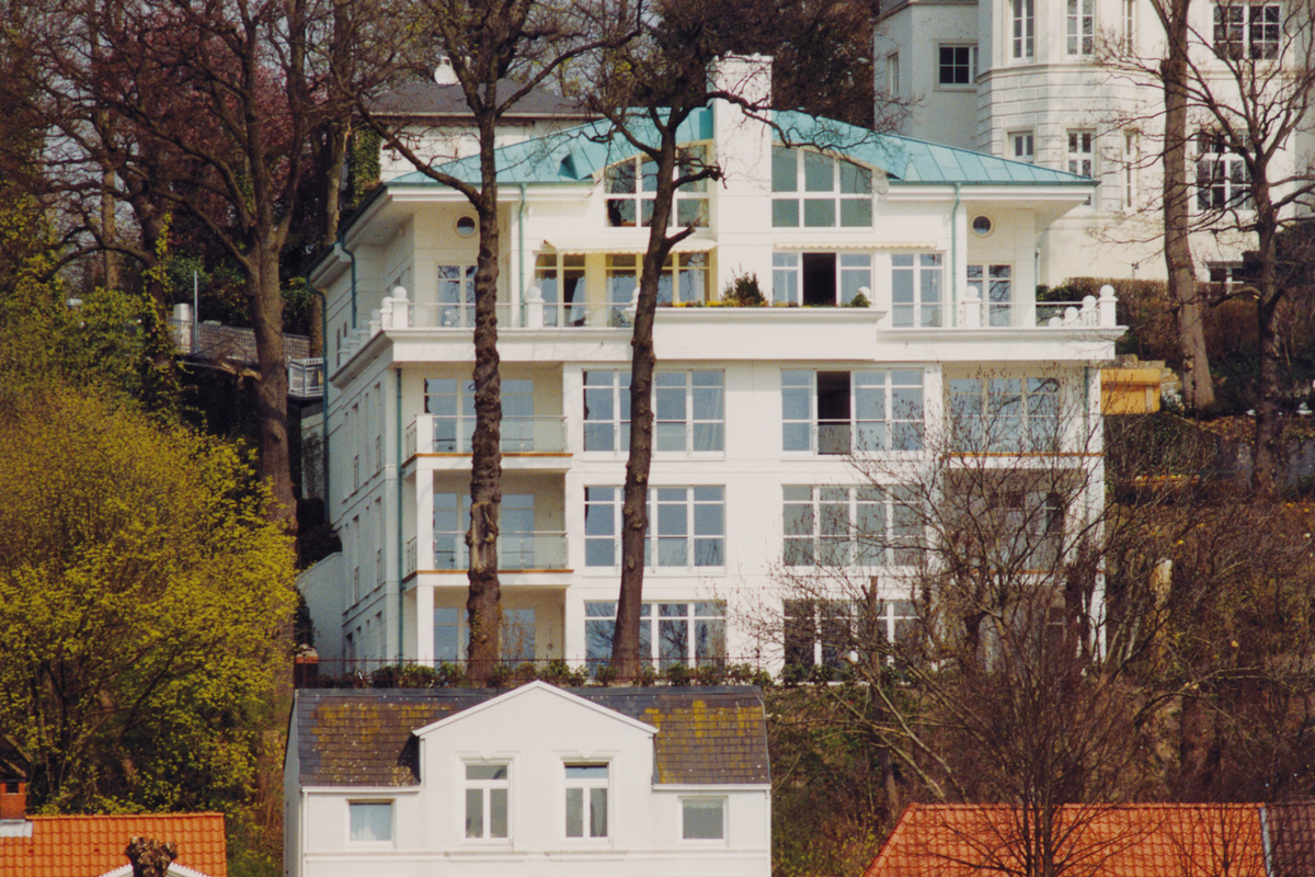 Von einem erhöhtem Plateau aus können die Käufer von sechs Eigentumswohnungen diesen unverbaubaren Blick ganz besonders genießen: Am Elbhang im Stadtteil Othmarschen entstand dazu auf einem rund 2000 Quadratmeter große, von alten Eichen eingerahmten Grundstück eine exklusive Wohnanlage, die einen architektonischen Bogen von der Tradition bis zur Moderne schlägt.
